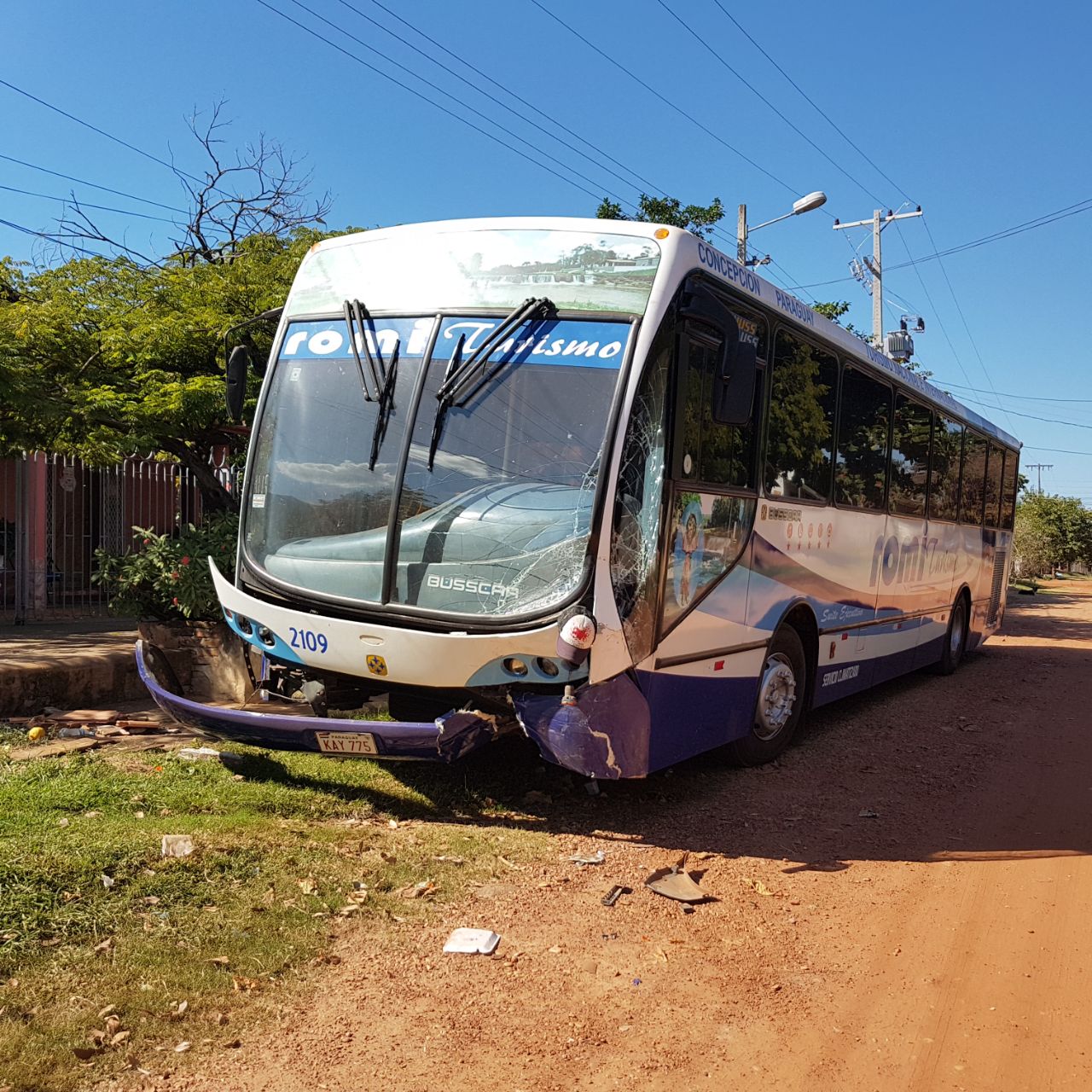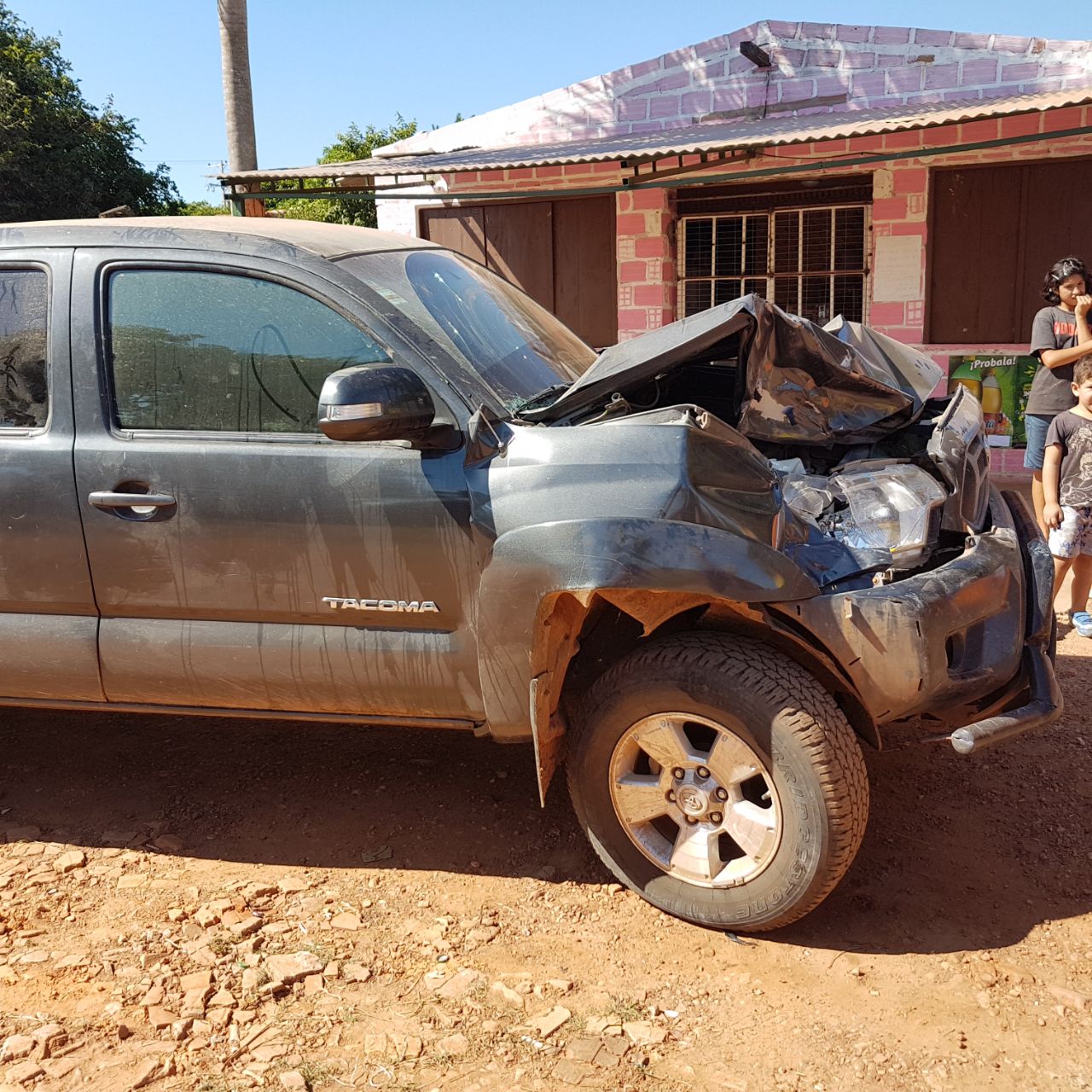 El joven en un momento dado se subió sin permiso en una camioneta de la marca Toyota tipo Tacoma propiedad de su amigo Wiebe (46) y aproximadamente a una cuadra del lugar fue a colisionar contra un ómnibus estacionado al costado de una vereda.