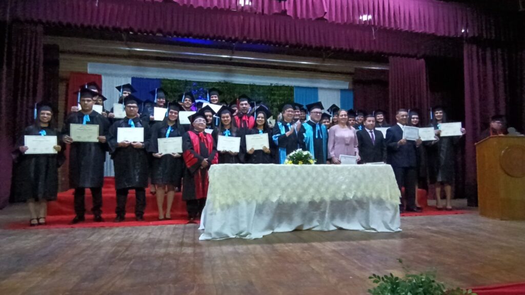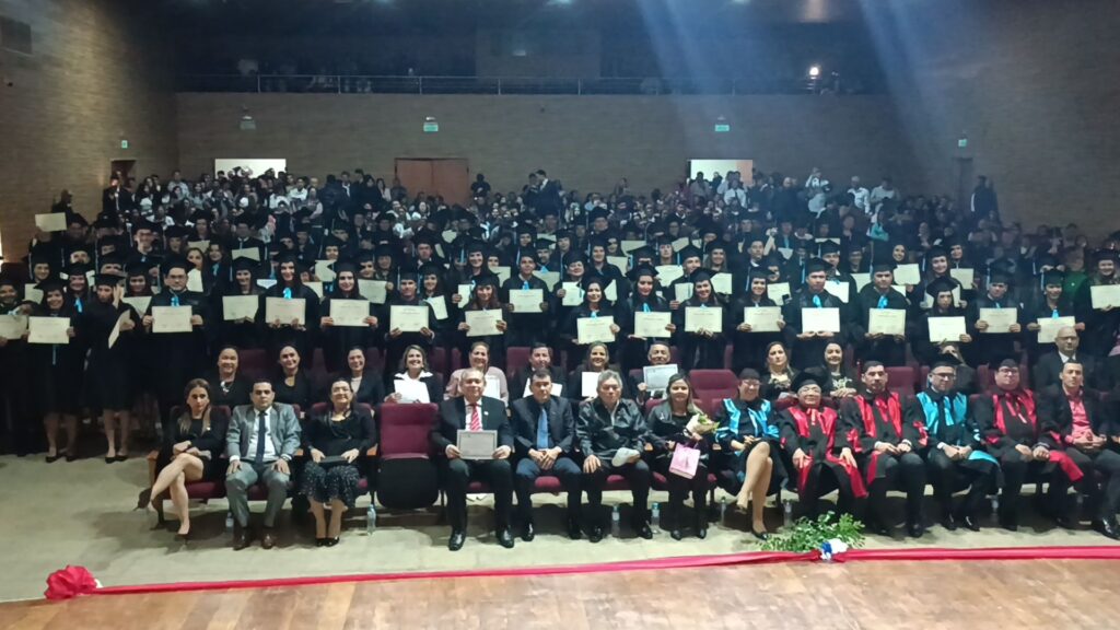 Graduados de cinco carreras de grado y programas de posgrado recibieron sus títulos en una emotiva ceremonia. Se destacó la primera promoción de la carrera de Psicología. El acto tuvo lugar en el Teatro Municipal Pedro Alvarenga Caballero.