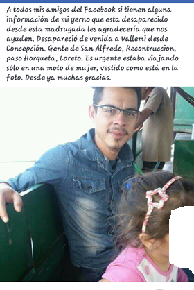 Jesús Rafael Portillo González de 23 años partió este domingo a las 03:00 Hs de Concepción rumbo a Puerto Casado en una motocicleta. Sin embargo, jamás llegó a destino.