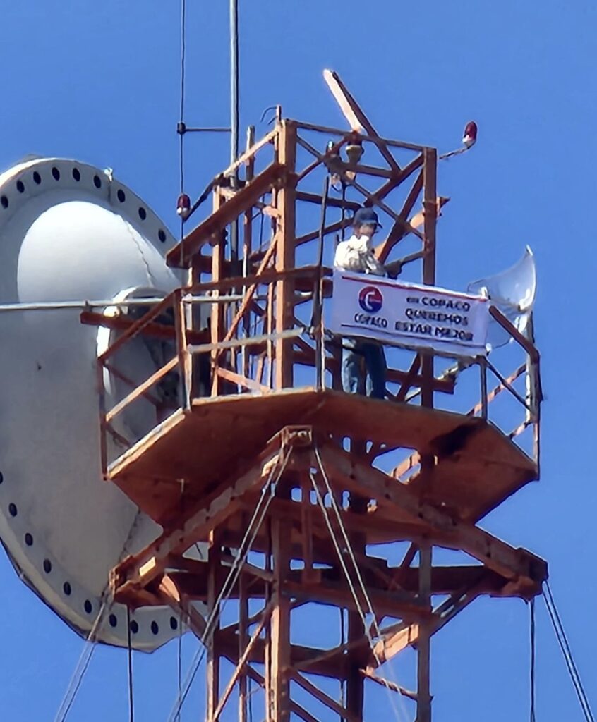 Concepción vivió una inusual protesta este jueves, cuando Héctor Monges, un antiguo funcionario de la Compañía Paraguaya de Comunicaciones (COPACO), escaló la torre de telecomunicaciones de la empresa, de 110 metros de altura, para manifestarse contra las graves irregularidades que afectan a la institución.