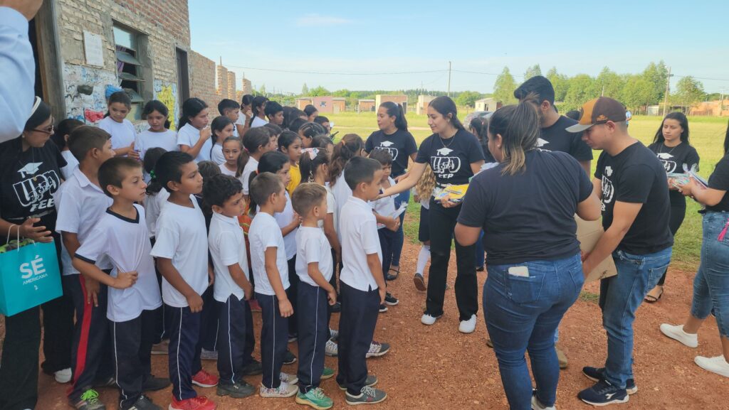 Esta acción solidaria de los futuros docentes se enmarca en su Primer Último Día de Clases (UPD). Lejos de hacer fiestas y consumo de bebidas, los de futuros docentes debieron buscar recursos, pedir ayuda y obsequiar los útiles escolares a los humildes niños del Asentamiento.