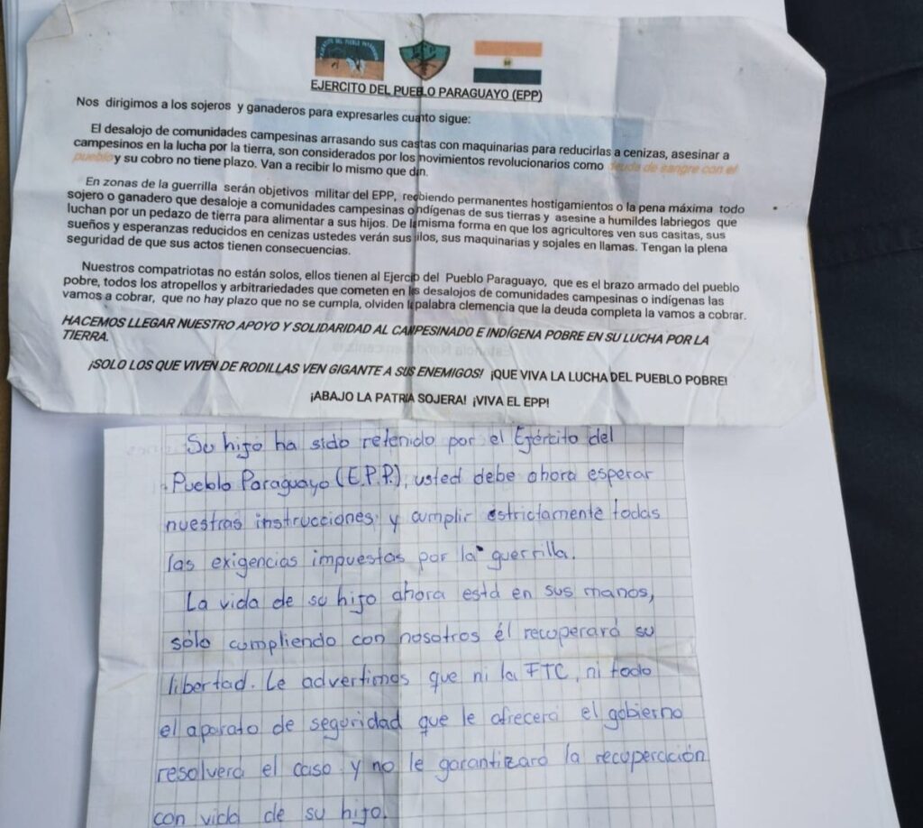 Panfleto en el cual, el EPP se atribuye el secuestro