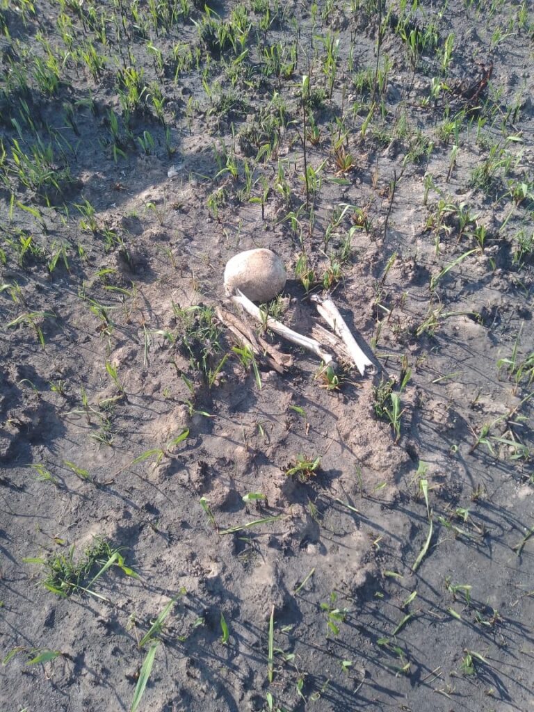 Pasado el mediodía de este martes, la comitiva encabezada por el fiscal Pablo Zárate realizó el levantamiento de los restos óseos hallados en la estancia Oliva, en Bella Vista Norte, Departamento de Amambay.
