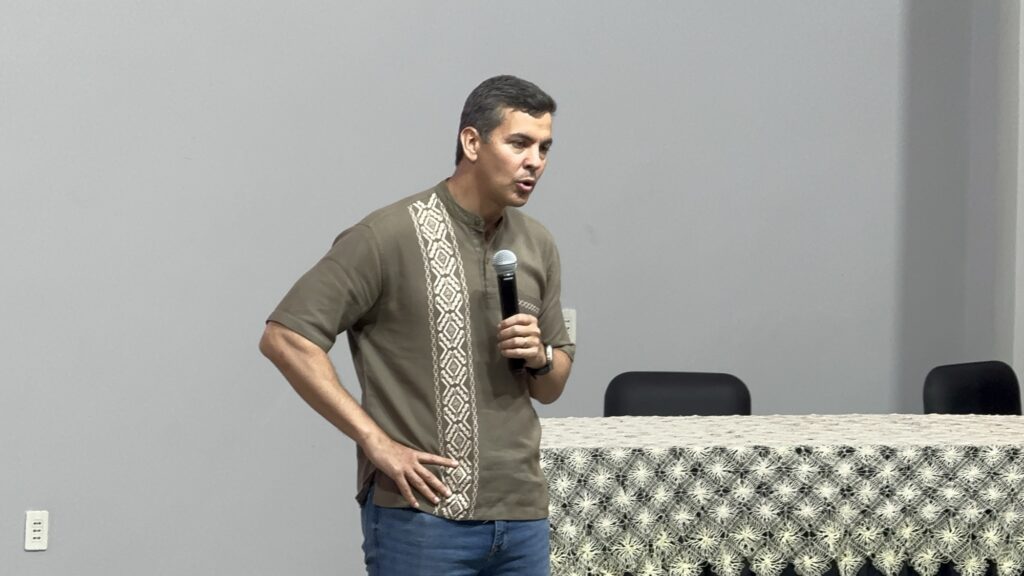 “Me anoto para venir a este lindo salón y compartir con los jóvenes el sueño de ver un gigante que resurge, de un Paraguay que no conoce de límites”, expresó.