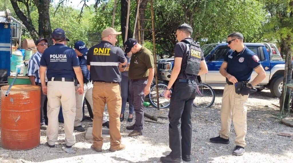 Los procedimientos fueron encabezados por el fiscal Óscar Fernández, con apoyo de la Policía Nacional, la Unidad Táctica Policial (UTP) y la Dirección Nacional de Ingresos Tributarios (DNIT). Durante los allanamientos simultáneos fueron intervenidos dos inmuebles, donde se decomisaron 8.400 litros de diésel y 10.600 litros de nafta.