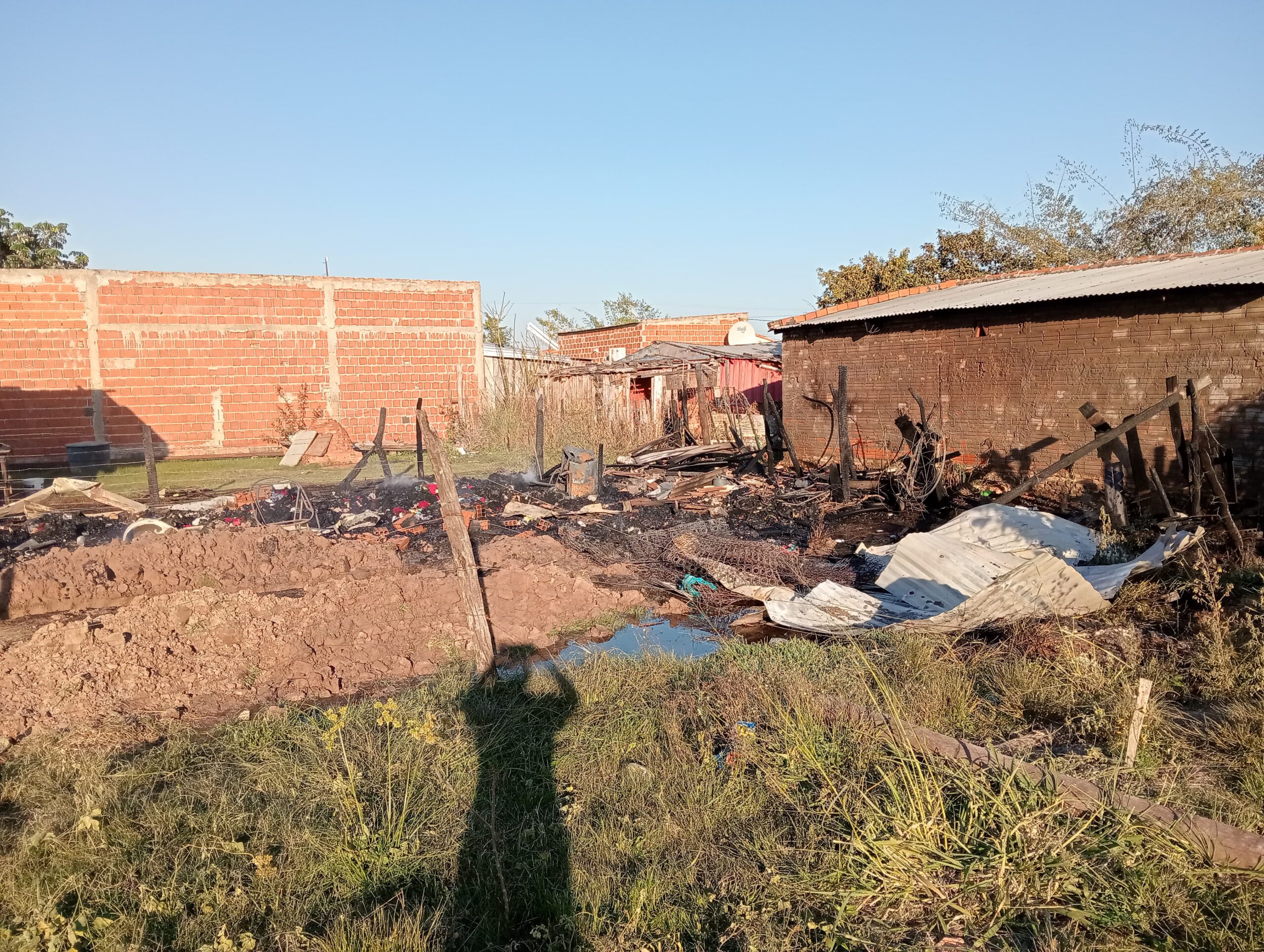 Una madre y sus seis hijos perdieron todas sus pertenencias en un incendio que consumió por completo su vivienda en el asentamiento San Luis de Aquino Kue, en la tarde de este jueves.
