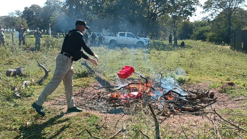 Esta mañana se realizó el anticipo jurisdiccional de prueba en el que fueron destruidos 283 kilos de cocaína incautados el martes pasado en un doble fondo de un camión procedente de Pedro Juan Caballero. La diligencia, que incluyó la verificación final y la incineración de la droga, se llevó a cabo en el Regimiento Militar N° 10 Sauce de Concepción, con la presencia del fiscal antidrogas Arnaldo Argüello, la jueza de Garantías Liz Romero, el procesado, su defensor y representantes del Ministerio Público.