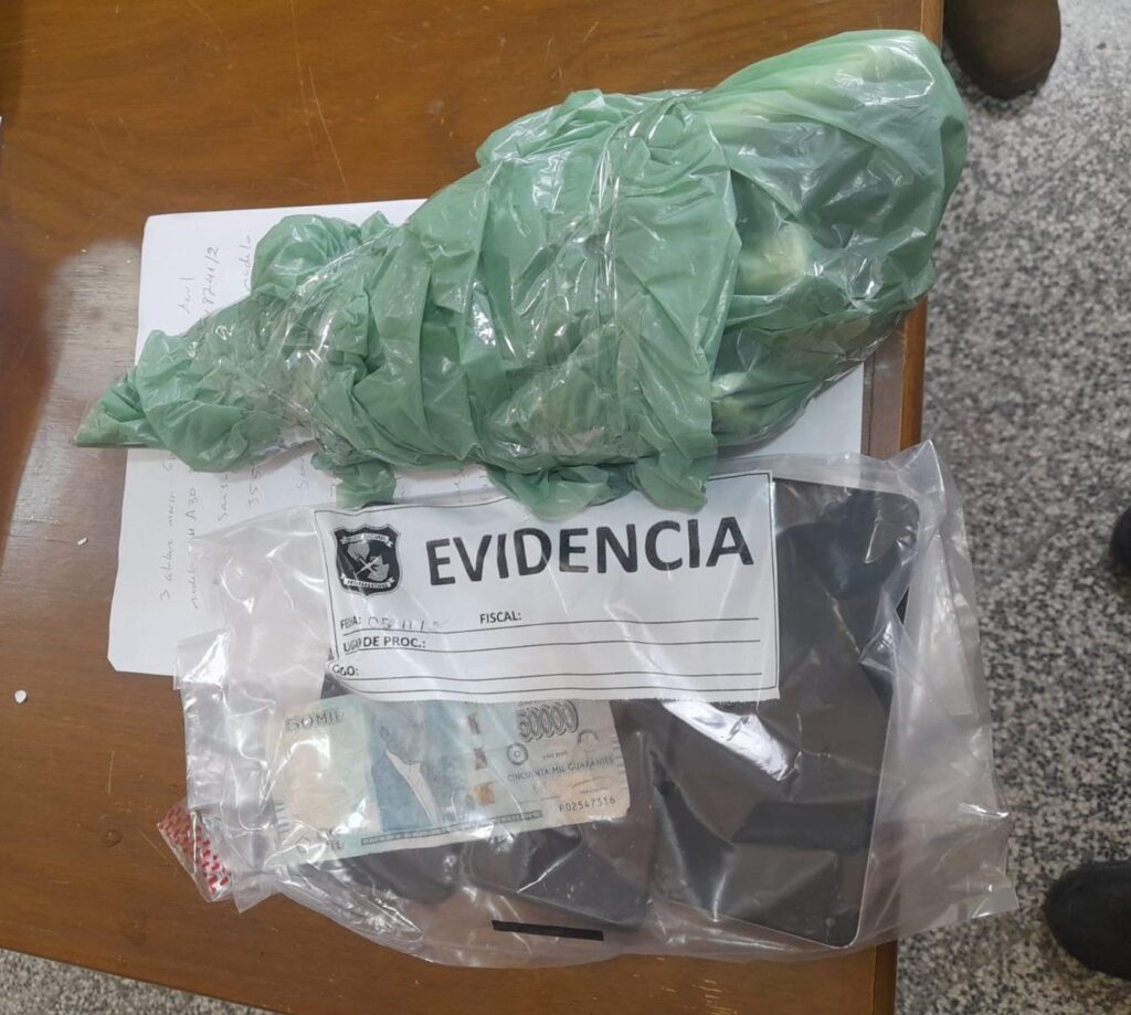 El análisis confirmó la presencia de marihuana en la sustancia verdosa, mientras que la sustancia blanquecina resultó negativa para cocaína. El pesaje preciso de cada paquete se registró, y todo el procedimiento fue comunicado a los agentes fiscales Abg. Joel Cazal y Abg. Arnaldo Arguello, de las Unidades de Nº 4 y la Especializada de Lucha Contra el Narcotráfico, respectivamente.