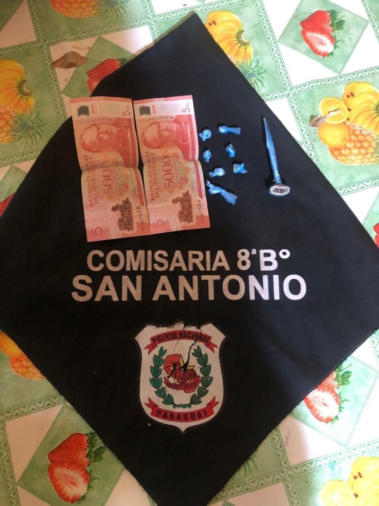 Una vez en sede policial y tras una inspección, en uno de los bolsillos del pantalón del detenido fueron encontradas siete dosis de supuesta cocaína tipo crack, diez mil guaraníes en efectivo y una pipa casera de aluminio. Posteriormente, el Departamento de Antinarcóticos Regional Nº 1 de Concepción realizó el análisis de campo correspondiente, arrojando resultado positivo a cocaína tipo crack, con un peso de 1,90 gramos.
