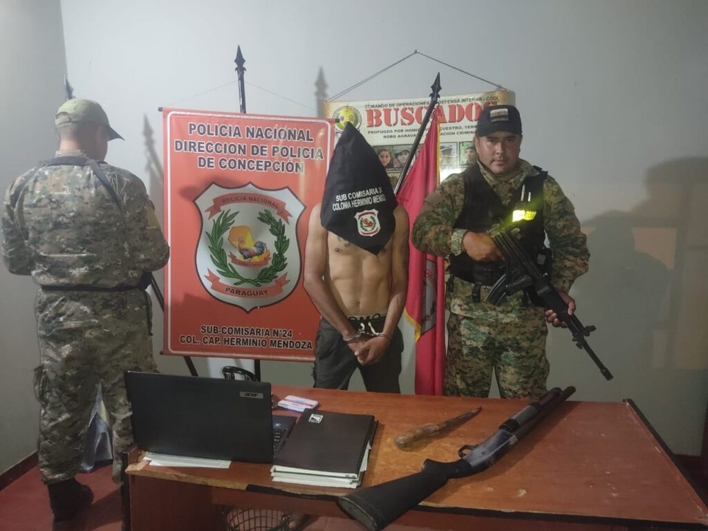 El aprehendido se encuentra actualmente recluido en la Comisaría 7ª Yby Yaú, en libre comunicación y a disposición de la Justicia Ordinaria. El arma de fuego recuperado y el arma blanca incautada fueron remitidos a la Fiscalía Zonal de Yby Yaú, con todos los antecedentes del caso según informaron desde la Dirección Policial de Concepción.