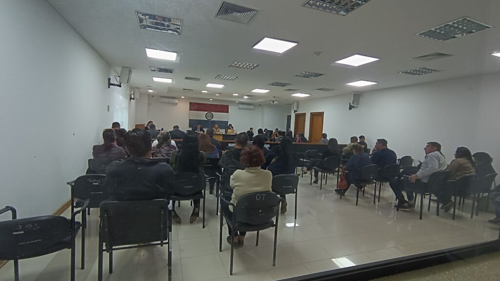 En el Palacio de Justicia de Concepción, el fiscal Joel Cazal está presentando los alegatos finales en el juicio oral y público del caso Isamar Cabral, la docente asesinada en Loreto. Los acusados Germán Larrea e Hilario Gayoso declararon al inicio del juicio, mientras que familiares, amigos y ex compañeros de trabajo de la víctima participan del proceso judicial, esperando y exigiendo la condena máxima.