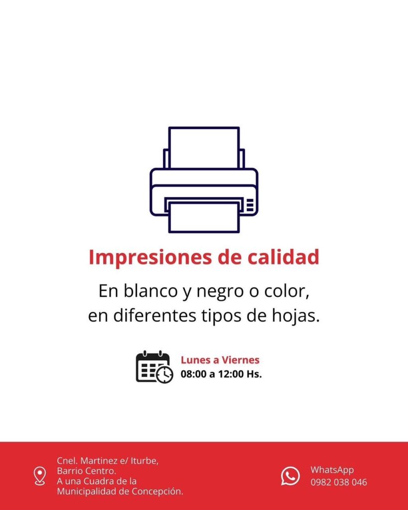 El local también ofrecerá impresiones en blanco y negro y a color, en distintos tipos de papel: común, fotográfico, de hilo y cartulina. El servicio estará disponible de forma permanente.