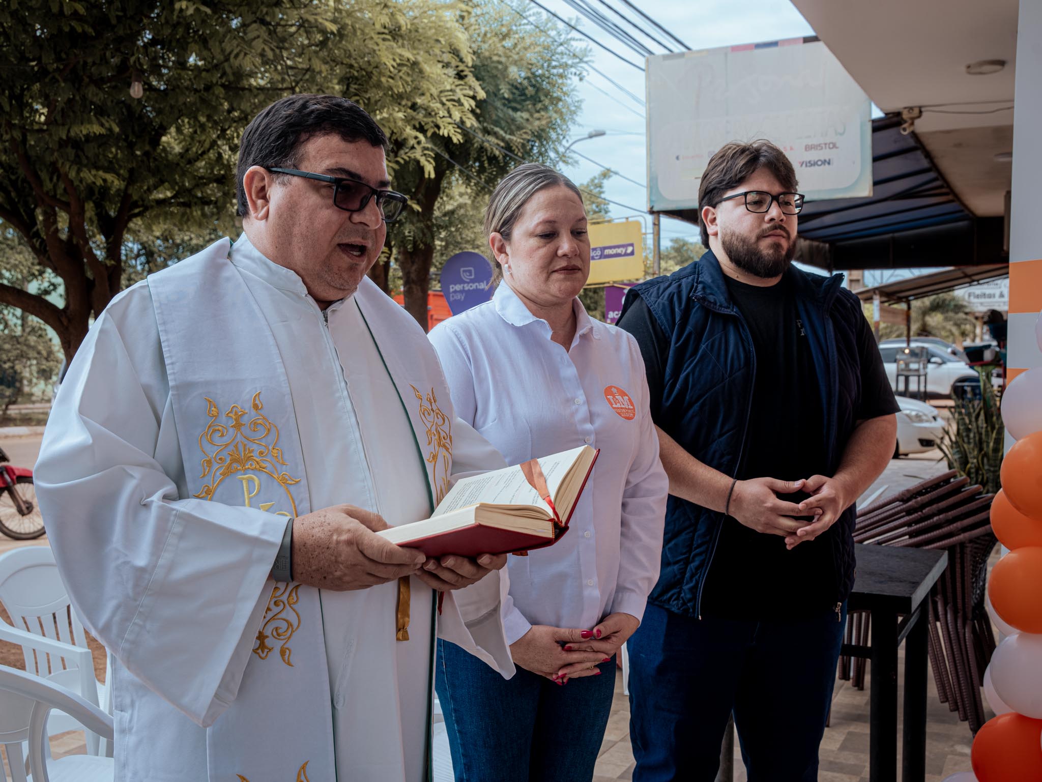 La jornada inaugural estuvo acompañada de un momento de profunda emoción y gratitud, con la bendición del nuevo local a cargo del Padre Sergio Maciel, quien elevó una oración por el éxito del emprendimiento, la unión familiar y las nuevas oportunidades laborales que genera. El gesto simbolizó la fe y el compromiso con los valores que han guiado a L&M Delicias desde sus inicios.