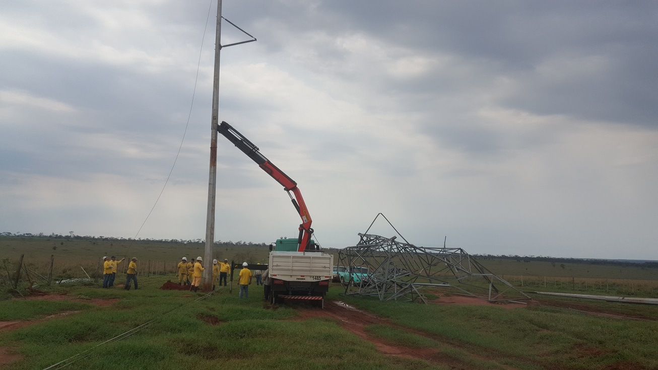 Por su parte, funcionarios de la ANDE levantan columnas de emergencia para reponer la línea de alta tensión, cuyas enormes torres fueron derribadas por la tormenta.