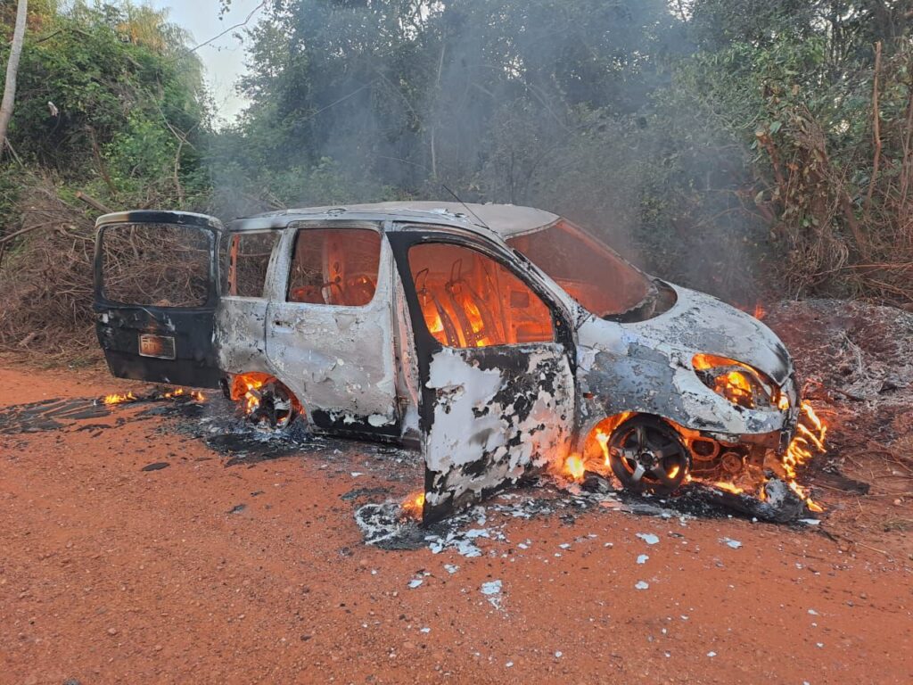 El vehículo, denunciado como robado en Luque y utilizado en el atraco, fue hallado incinerado en un camino vecinal a unos 10 km del casco urbano.