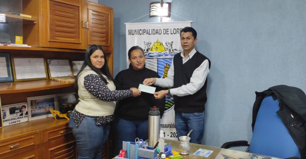 La Municipalidad de Loreto entregó un aporte de 25.000.000 de guaraníes al Comité de Mujeres “Mburukuja Poty” de la comunidad Virgen del Camino. El monto será destinado a proyectos productivos impulsados por el grupo beneficiado.