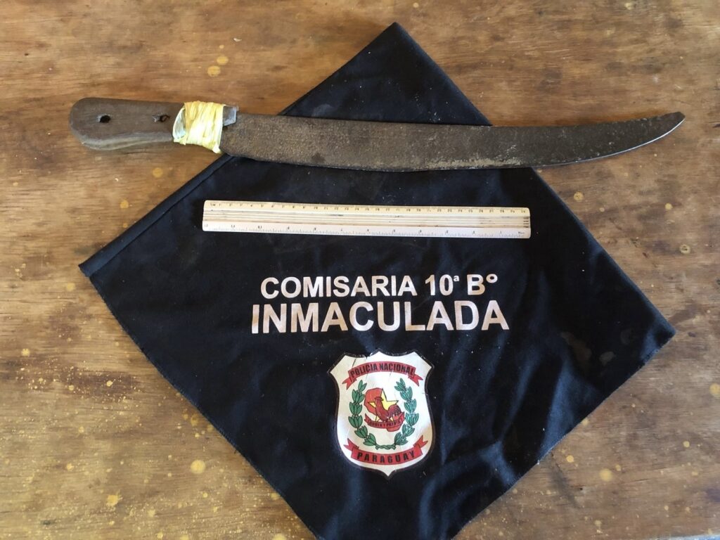 La aprehendida fue identificada como Sandra Carolina Prieto Martínez, alias “Caroli’i”, quien no cuenta con domicilio fijo y posee antecedentes por hurto y robo en el año 2024. De su poder fue incautado un machete sin marca, de aproximadamente 60 centímetros de largo, con mango de madera color marrón.