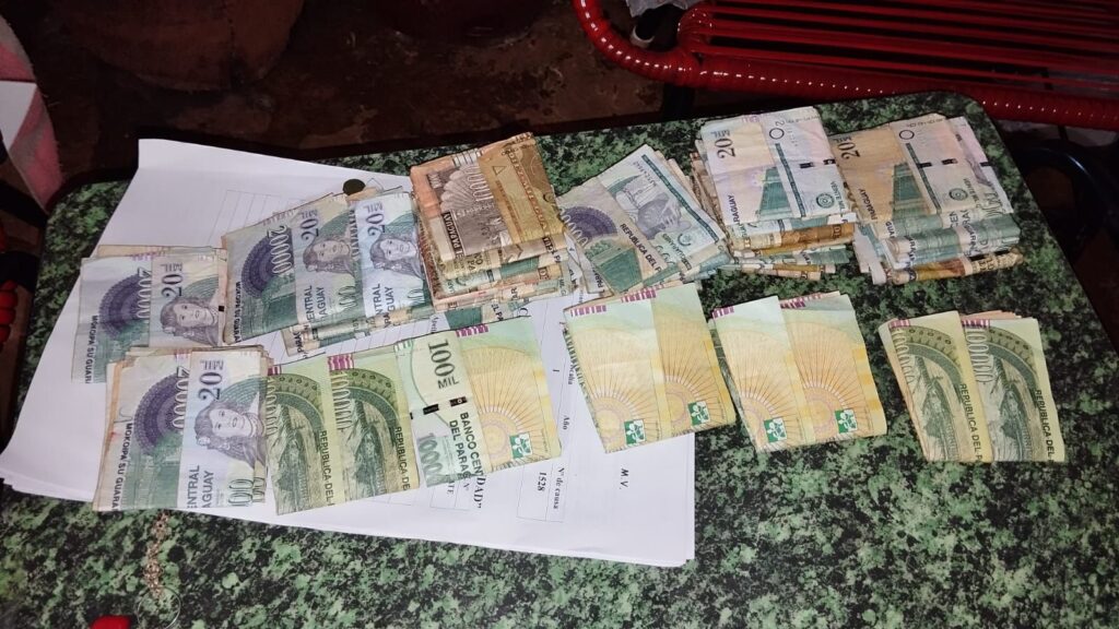 En la segunda vivienda, ocupada por Violeta Elizabeth Ramírez Villalba de 25 años, y su pareja identificado como EPIFANIO BENITEZ, de 27 años, se descubrió una importante suma de dinero en efectivo de diferentes denominaciones, totalizando la cantidad de doce millones ochocientos mil guaraníes (Gs.12.800.000). A pesar de la falta de explicación sobre el origen de estos fondos, la mayoría en bajas denominaciones, se procedió con el decomiso bajo la orden del Agente Fiscal interviniente, Pablo René Zárate.
