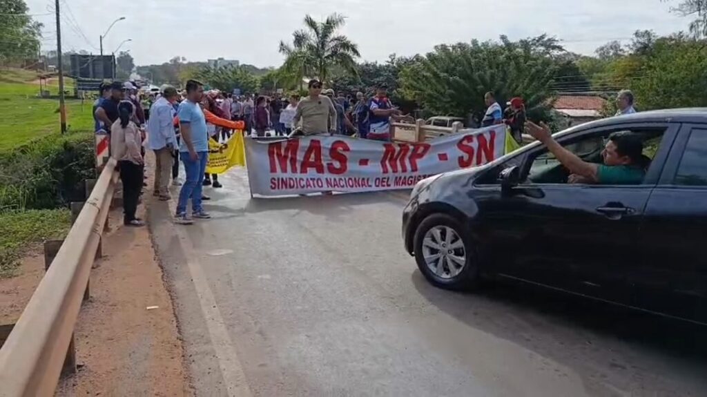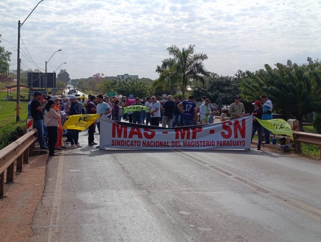 Educadores de la Organización de Trabajadores de la Educación del Paraguay – Sindicato Nacional (OTEP-SN), distrito Yby Yaú, se sumaron a la huelga nacional de docentes con un cierre intermitente del puente principal de acceso a la ciudad como medida de presión al Gobierno.