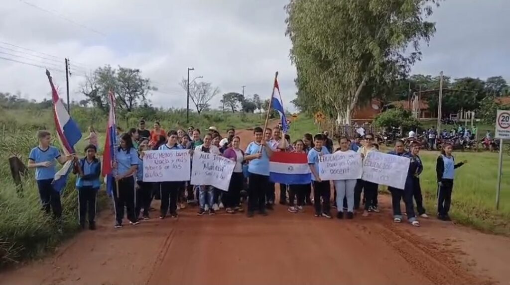 Padres de familia y alumnos de la Escuela N.º 1732 Dominga Ocariz de Samaniego, ubicada en la localidad de Jorge Sebastián Miranda, distrito de Paso Barreto, iniciaron una medida de fuerza en la mañana de este jueves en reclamo por la falta de rubros docentes.