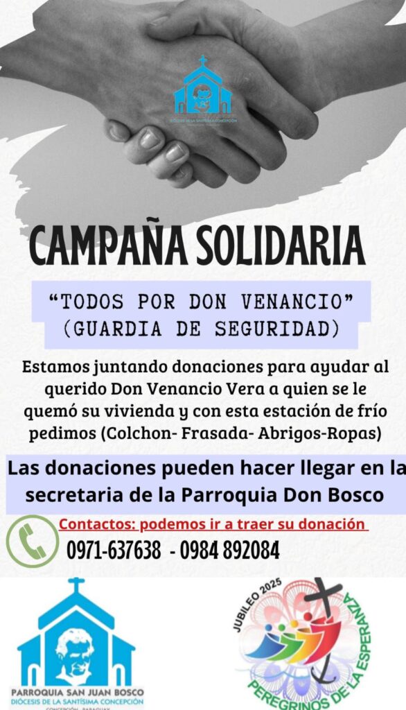 La parroquia San Juan Bosco, ubicada en el barrio Itacurubí de Concepción, inició una campaña solidaria en favor de don Venancio Vera Gómez, de 62 años, quien perdió su vivienda y todas sus pertenencias en un incendio registrado en la madrugada de este miércoles en el barrio San Roque.
