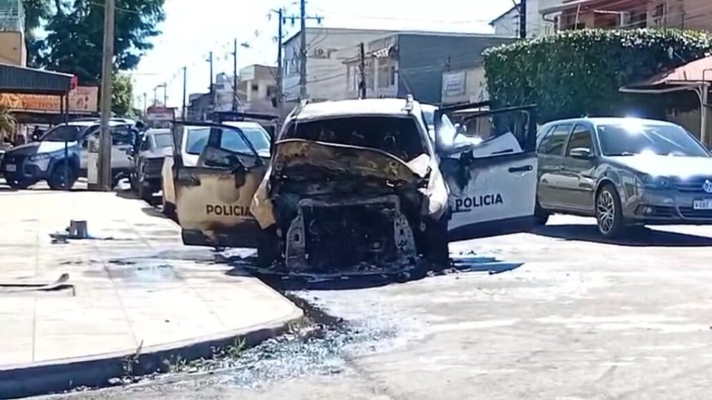 Un vehículo patrullero de la Comisaría 2.ª de Pedro Juan Caballero fue completamente consumido por el fuego este miércoles al mediodía, cuando circulaba sobre la calle Carlos Antonio López, casi Eliza Lynch.