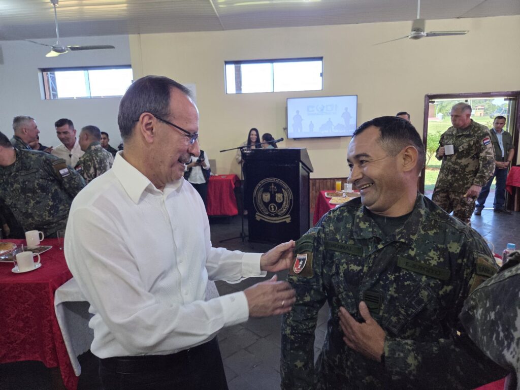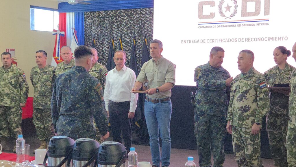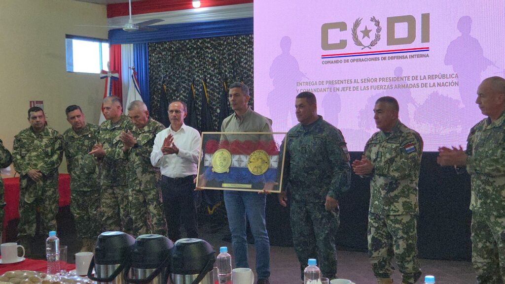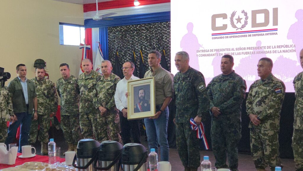 El presidente de la República y comandante en jefe de las Fuerzas Armadas de la Nación, Santiago Peña, visitó este viernes a los agentes militares del Comando de Operaciones de Defensa Interna (CODI-FTC), ocasión en la que llevó sus saludos de fin de año y expresó su reconocimiento por los logros alcanzados en la lucha por la pacificación del norte del país.