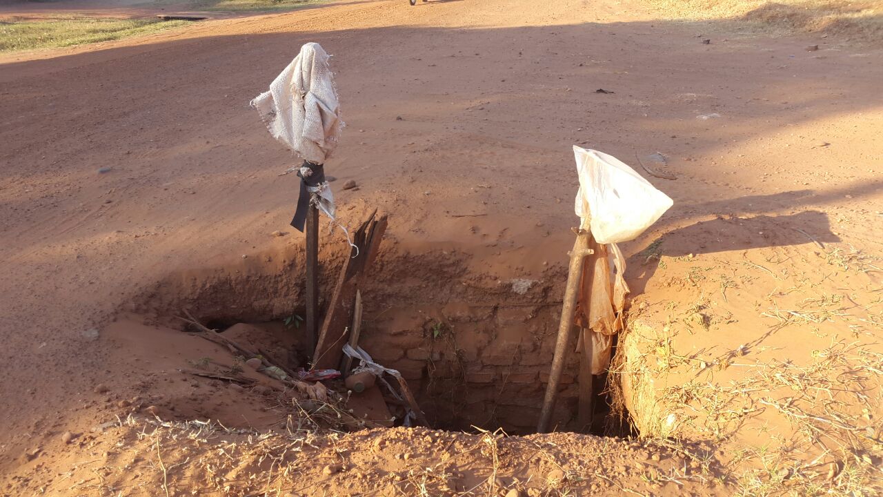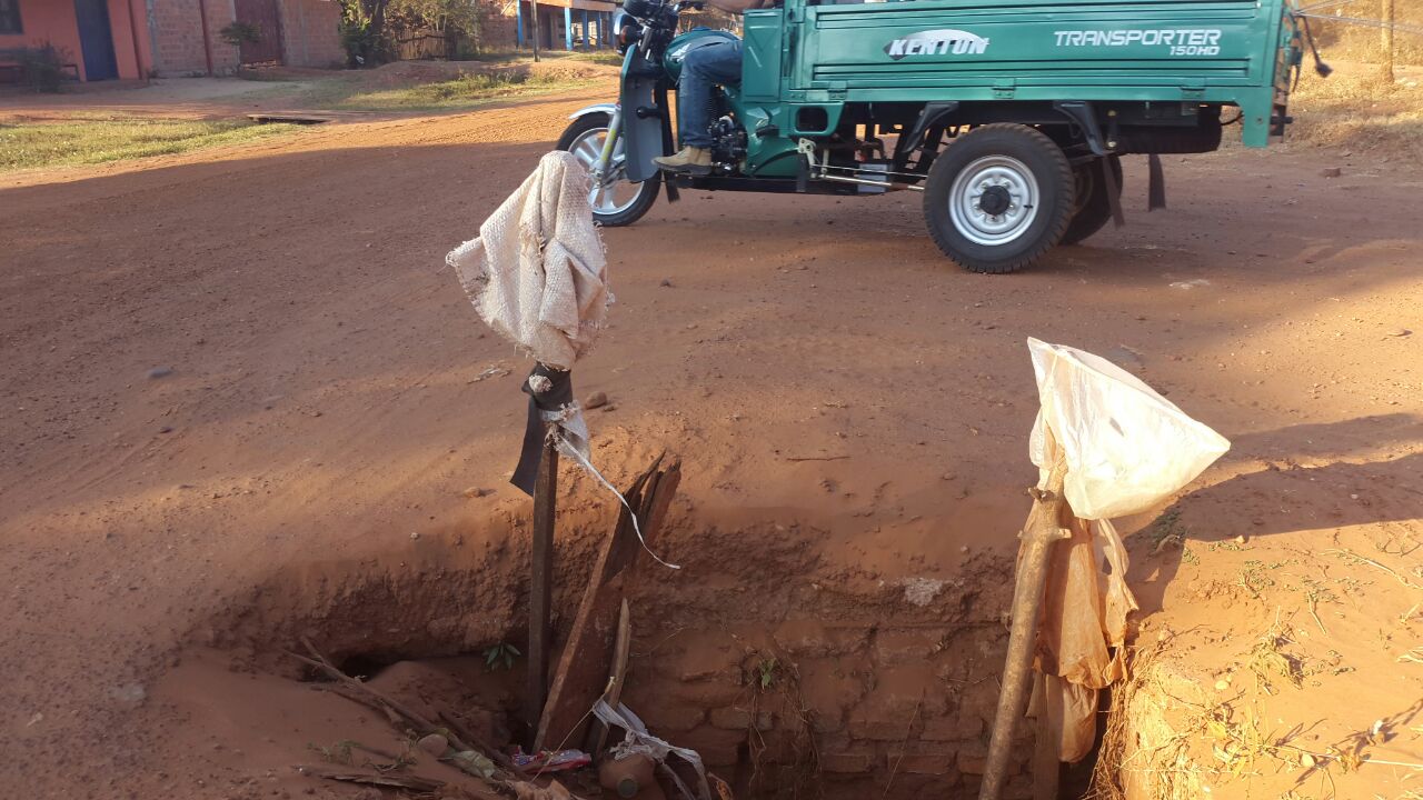 Los vecinos colocaron dos bolsas piro como señales, de modo a evitar que más un motociclistas caiga en el lugar.