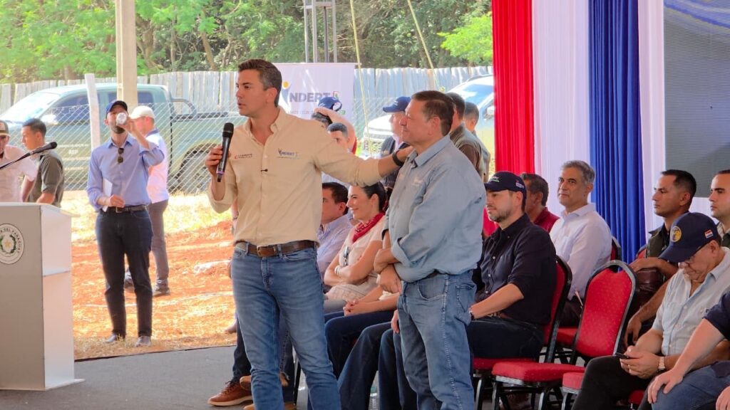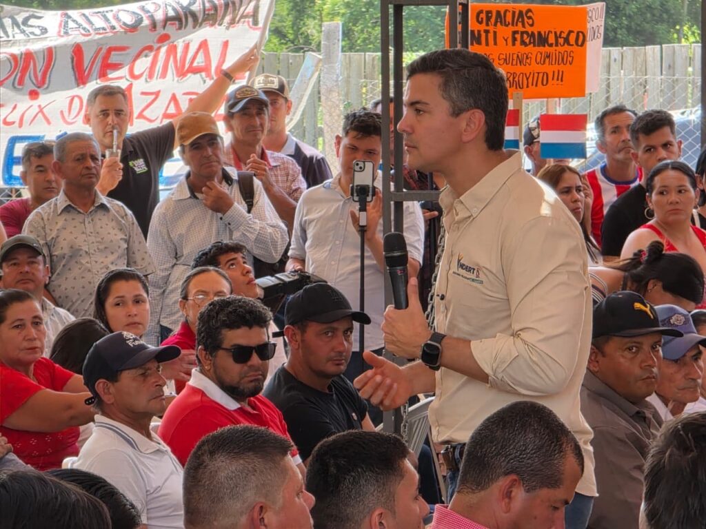 El presidente Santiago Peña encabezó en Arroyito la entrega de 120 nuevos títulos de propiedad para familias campesinas de la comunidad Virgen del Camino. El mandatario aprovechó el acto para expresar un contundente apoyo al presidente del Indert, Francisco Ruiz Díaz.