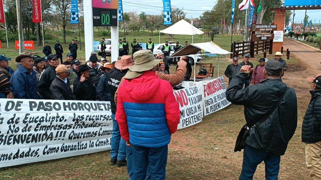 Con pancartas y reclamos, pequeños productores de Concepción se manifestaron este sábado frente al campo de exposiciones Nanawa. Exigen la eliminación de la ley 7.221, que obliga al uso de chips y caravanas en el ganado, alegando perjuicios económicos y sanitarios.