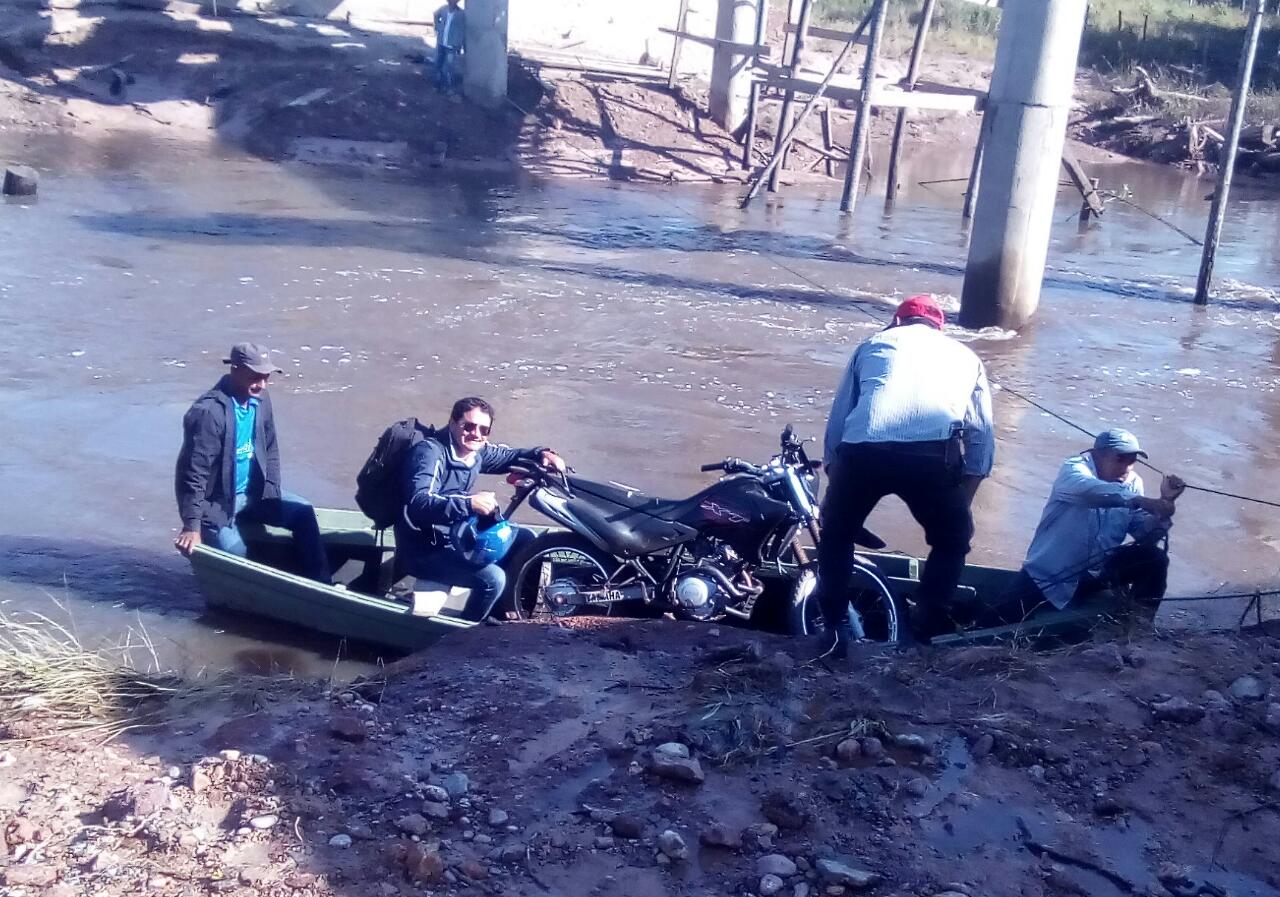 Ingenio. Los pobladores de las zonas aisladas cruzan en bote con sus motocicletas..