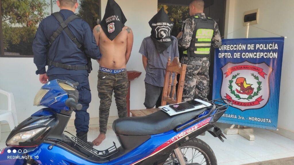 La Policía Nacional detuvo este sábado a dos hombres en la Villa Santa Teresa de la ciudad de Horqueta, implicados en un caso de hurto agravado.