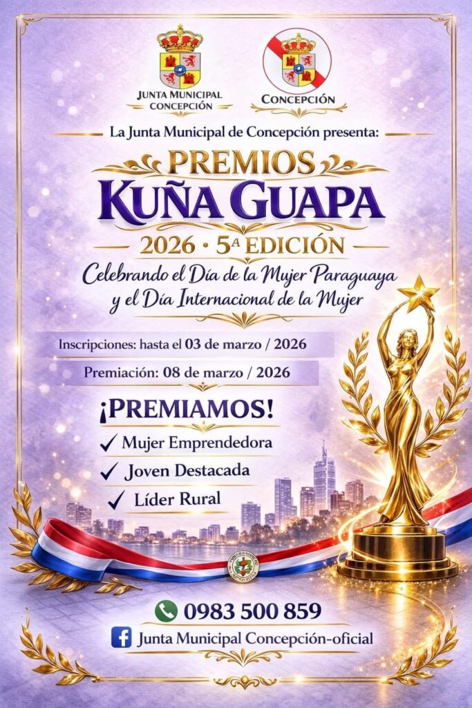 La concejal municipal Paty Coronel confirmó la realización de una nueva edición de los premios “Kuña Guapa” 2026, distinción creada por ordenanza municipal con el objetivo de reconocer a mujeres concepcioneras que dejan huella en su comunidad.