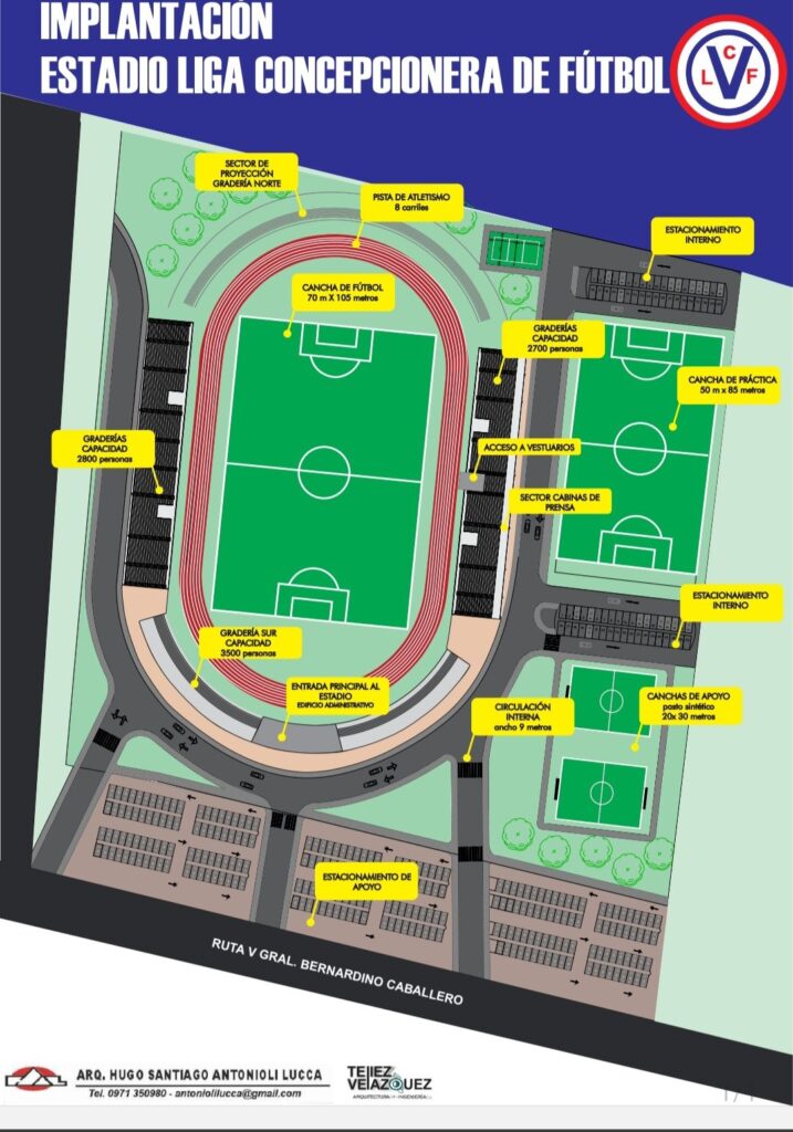 El estadio estaría ubicado en la zona de Aquino-cué, en un predio de 5 hectáreas, según adelantaron los dirigentes. Durante la exposición, el presidente de la Liga Concepcionera de Fútbol, Ítalo Centurión, brindó más detalles sobre la infraestructura que se pretende levantar y resaltó la importancia que tendría para el deporte regional.