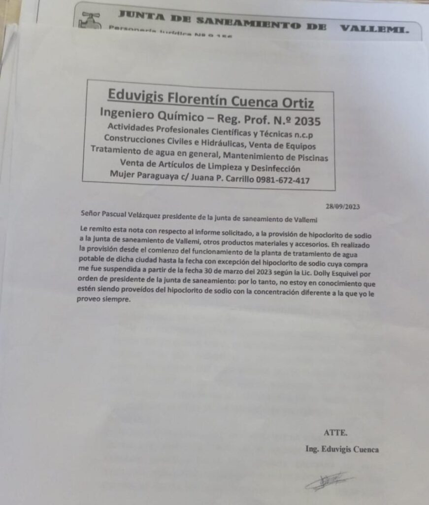 Presidente de Junta de Saneamiento Vallemí Refuta Acusaciones - Concepción al Día