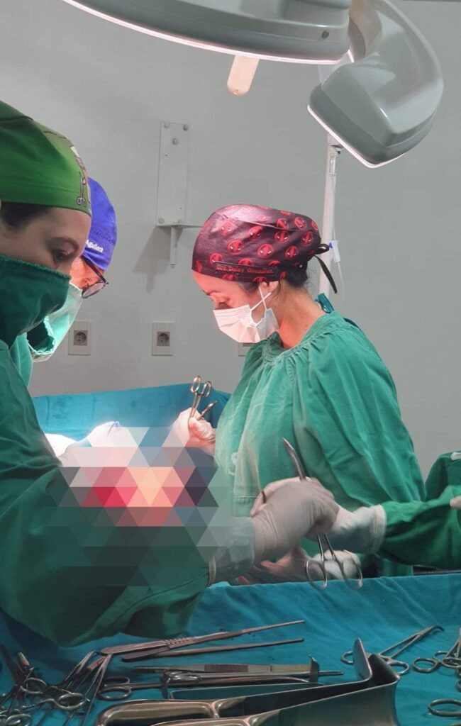 El equipo quirúrgico, liderado por el Dr. César Aguilera y conformado por las Dras. Daisy González y Lizandra Martínez, junto con los anestesistas Lic. Sergio Paredes y Lic. Nancy López, y el personal de enfermería, realizó una reparación exitosa de la aponeurosis y la colocación de una malla de polipropileno de 30×30 cm a nivel supraaponeurótico, utilizando la técnica de Chevrel.
