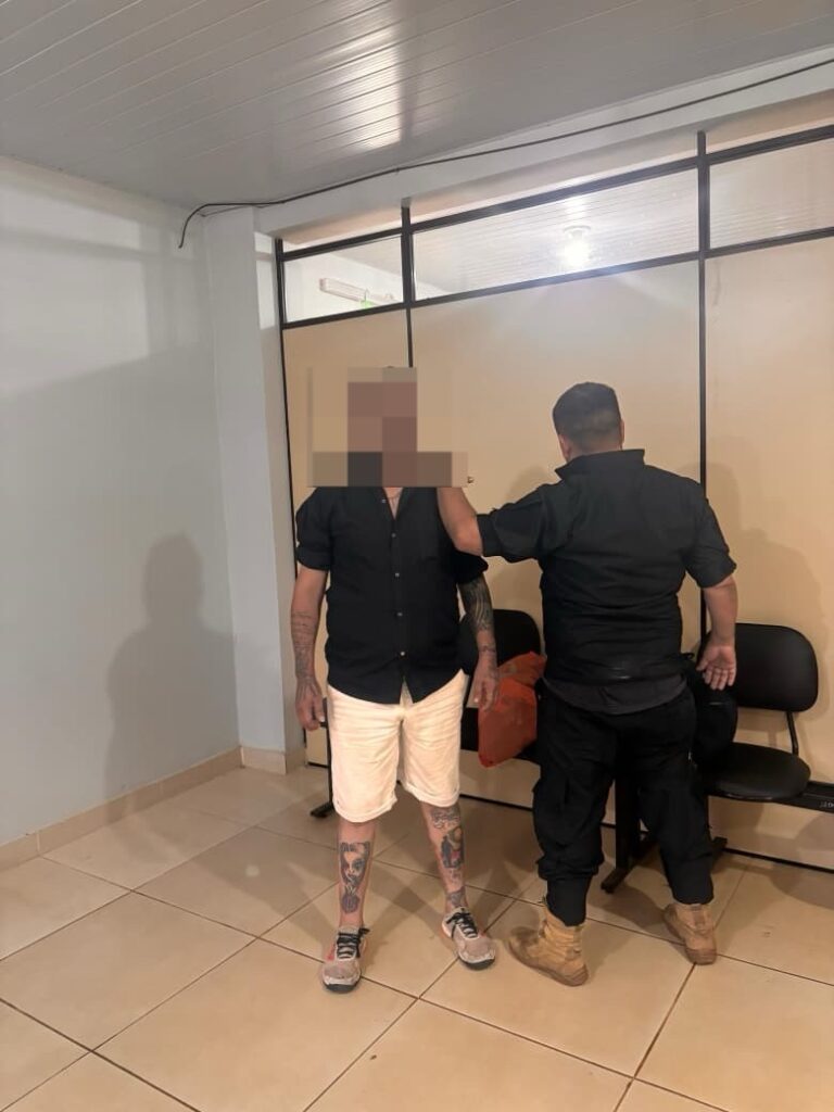 Una vez en la oficina de la División Judicial, los agentes procedieron a verificar sus datos en el sistema informático de la Policía Nacional, donde se constató que contaba con una orden de captura vigente, en cumplimiento al Oficio N° 575/2022, de fecha 31 de mayo de 2022, en el marco de la causa N° 1355-2022, caratulada como “Investigación fiscal sobre producción de riesgos comunes y otros”.