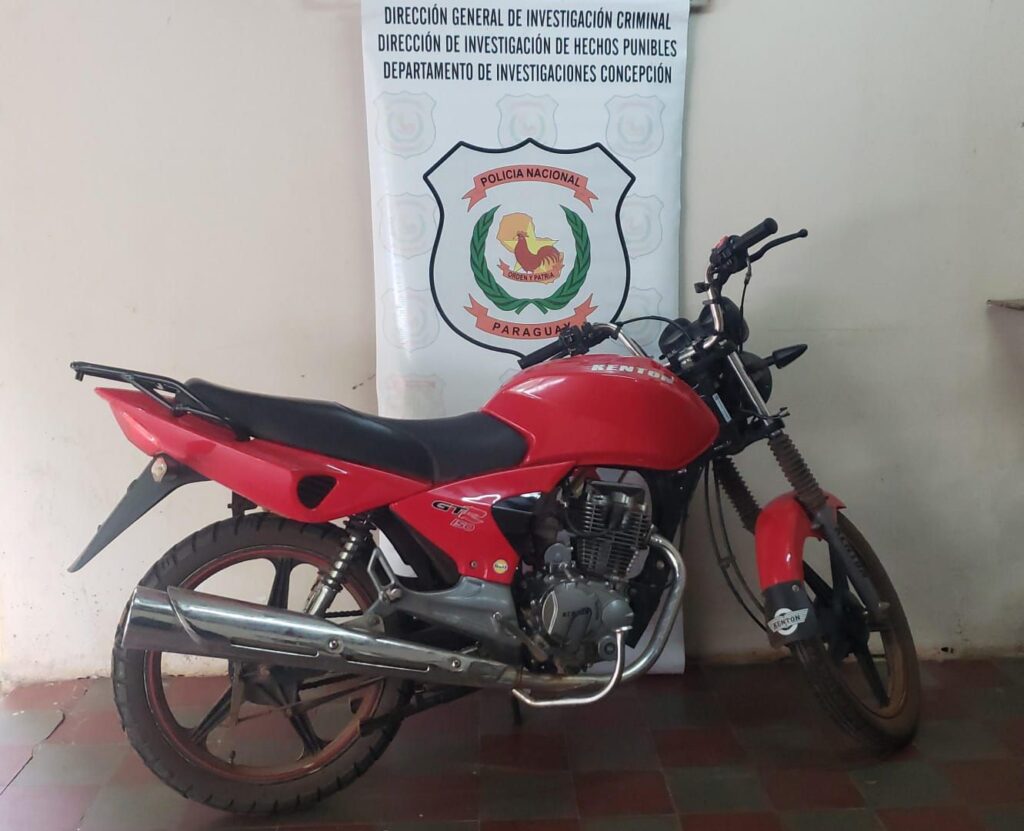 En la mañana de hoy, sábado 25 de mayo de 2024, agentes del Departamento de Investigaciones de Concepción lograron recuperar una motocicleta robada en un operativo realizado en una zona boscosa del barrio Itacurubi. El vehículo, una motocicleta Kenton modelo GTR150 de color rojo y sin chapa, había sido reportado como robado el pasado 23 de mayo en la Ruta Cayo Sotero Miltos. La víctima fue Delio Vázquez Giménez, residente en Saladillo.