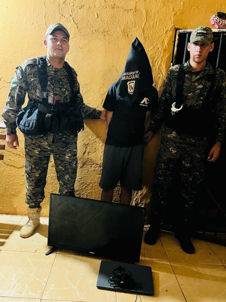 El aprehendido fue identificado como Wilson Sebastián Suárez Rodríguez, alias “bebe’i”, con antecedentes por violencia familiar, hurto agravado y reducción. Fue interceptado junto a otro sujeto —que logró escapar— cuando transportaban un televisor, una notebook y un equipo de karaoke. Al intentar huir, ingresaron a una zona boscosa, donde uno de ellos fue alcanzado y capturado.