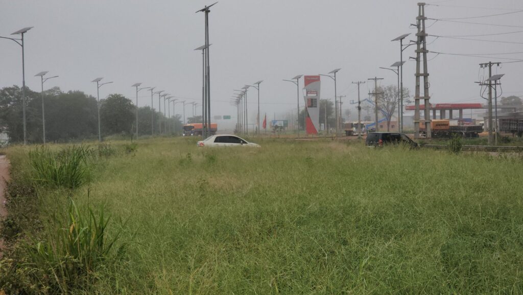 A tan solo 5 kilómetros del centro de Concepción, la rotonda ubicada en Aquino-cué —punto estratégico que conecta las rutas PY05 y PY22— se encuentra completamente invadida por malezas, generando serias dificultades para la circulación de vehículos. La visibilidad en el sitio es reducida, lo que representa un peligro constante para los transportistas y automovilistas que deben realizar maniobras de desvío en la zona.