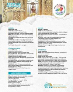 El día central, viernes 13 de junio, comenzará con el «Alegre despertar», seguido del desayuno comunitario y la solemne misa presidida por el Administrador Diocesano, Pbro. Julián Cristaldo. Al finalizar, se llevará a cabo la gran procesión con la sagrada imagen del santo y la participación de instituciones y autoridades de la ciudad.