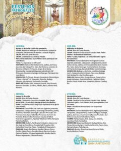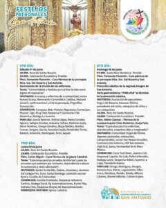 La fe y la tradición se renuevan este junio en el barrio San Antonio de Concepción, donde se desarrolla una nutrida agenda en honor a San Antonio de Padua, santo patrono de la comunidad. El programa incluye celebraciones eucarísticas temáticas, presencia de distintas comunidades, familias, comercios y grupos pastorales, así como actividades artísticas y sociales que dan vida al novenario.