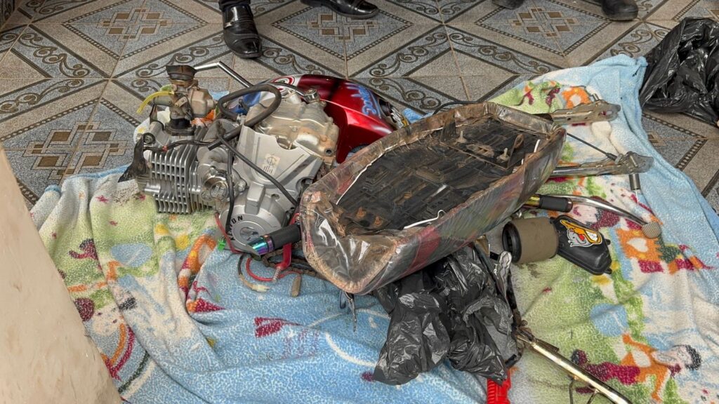 La motocicleta recuperada en partes.