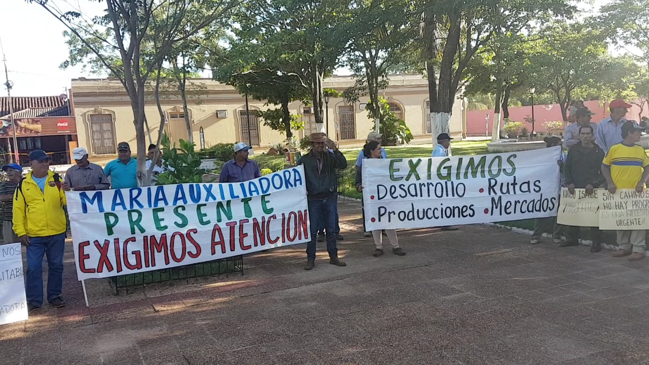 Los manifestantes pertenecen a las comunidades de Santa Rosa, María Auxiliadora, San Blas, Kurusu Isabel y otras localidades cercanas quienes llegaron hasta el palacete municipal para exigir el arreglo de los caminos vecinales de dichas comunidades ademas de una mayor atención por parte de las autoridades locales en especial del Intendente Alejandro Urbieta quien los recibió y escucho sus inquietudes.