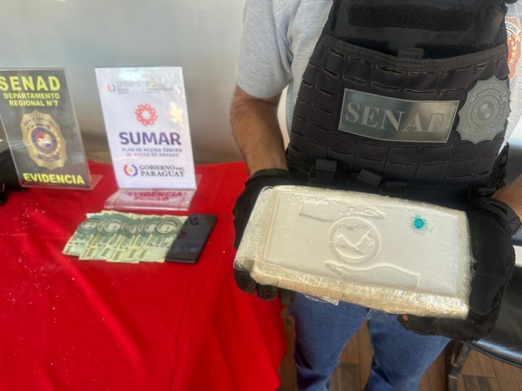 Agentes de la SENAD del Departamento Regional N.º 7 de Concepción interceptaron un taxi en inmediaciones de la Plaza “Gral. Resquín” y detuvieron a un pasajero que presuntamente comercializaba cocaína en la zona.
