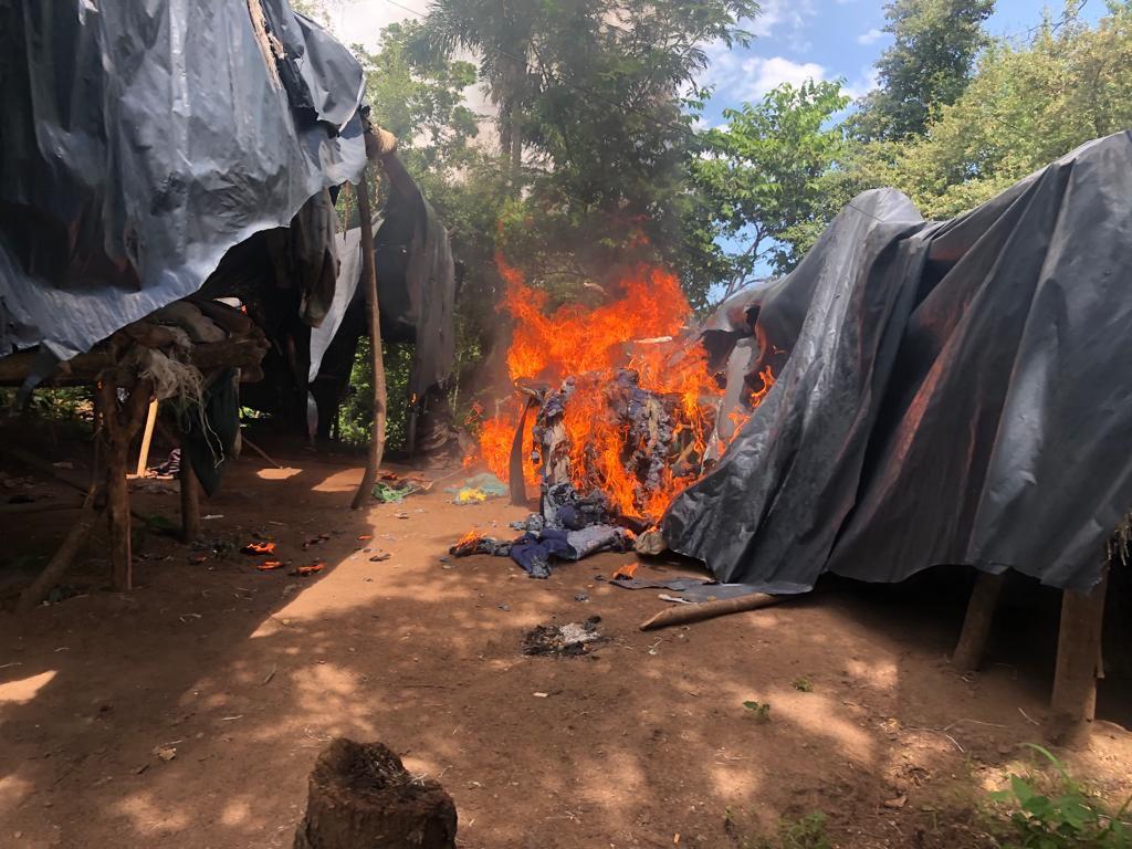 La redes de campamentos contaban con un generador de electricidad que los alimentaba. También fueron hallados fumigadores, zarandas y sembradoras.