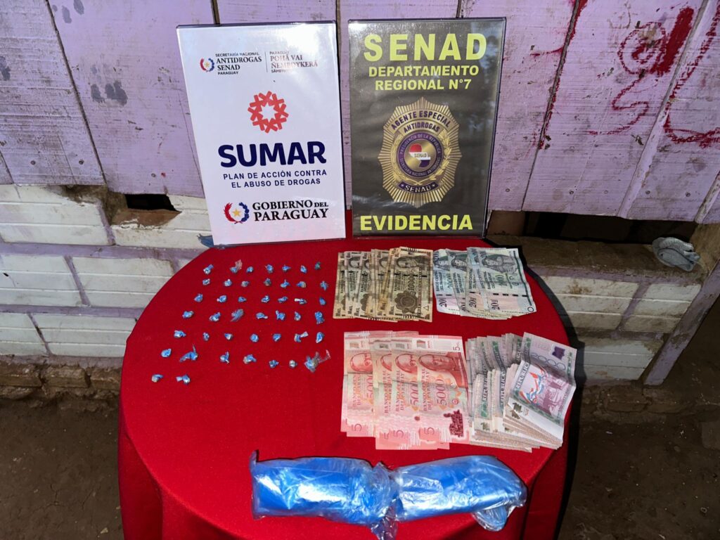 Durante la intervención se incautaron 12,96 gramos de crack, equivalentes a unas 65 dosis listas para la venta, además de G. 290.000 en efectivo en billetes de diferentes denominaciones.