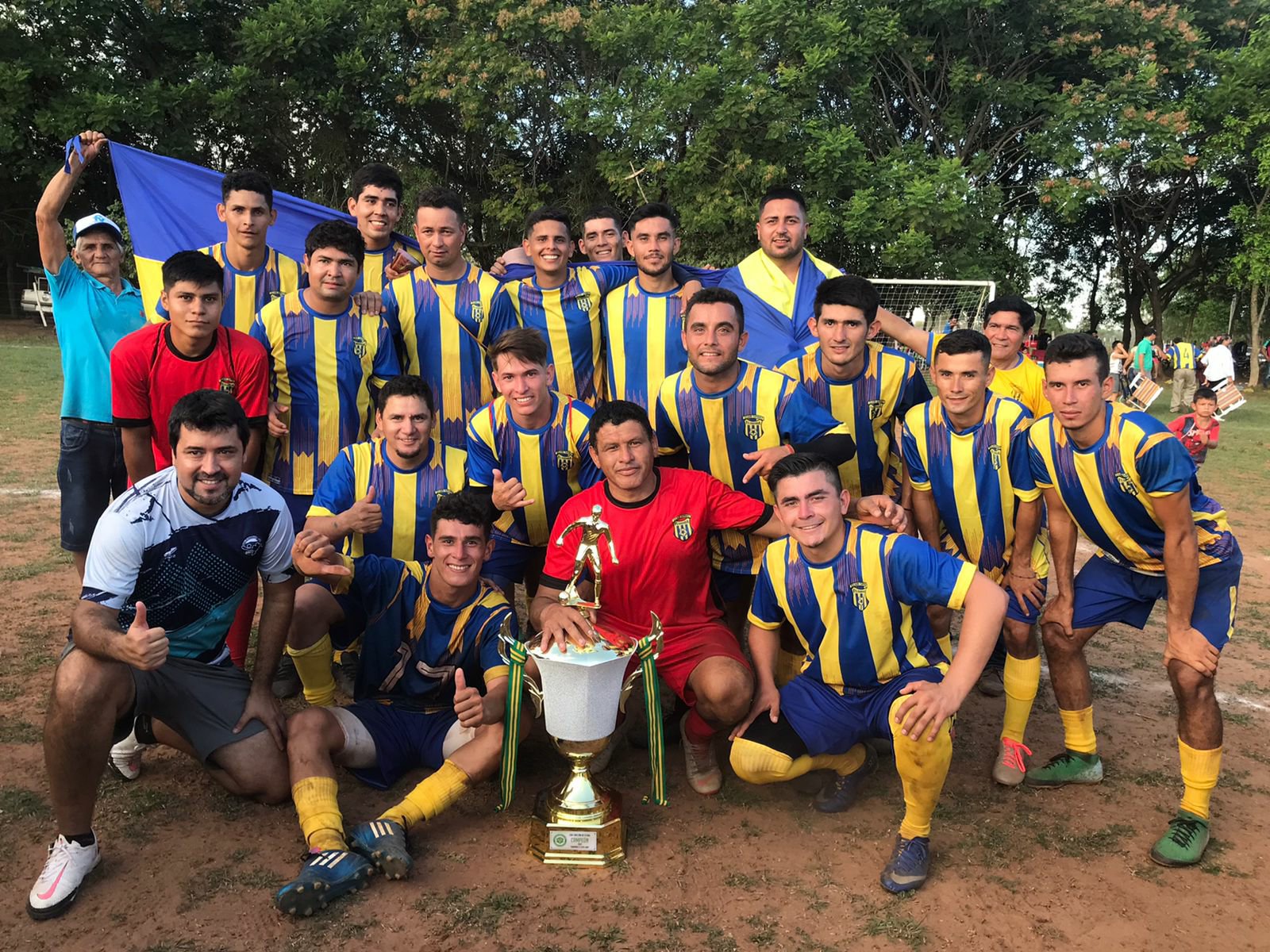 Plantel completo con el trofeo ganado (foto gentileza)