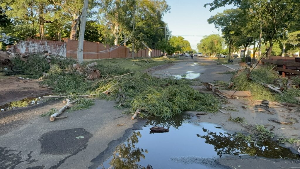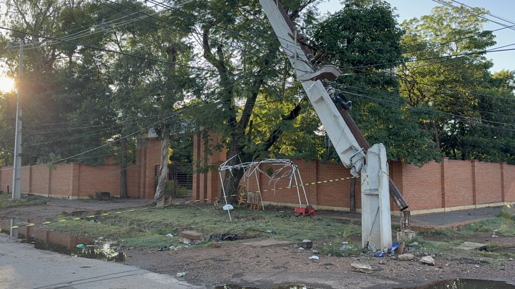 Por su parte, el jefe de Distribución de la ANDE informó que las cuadrillas trabajan desde la noche del temporal para restablecer el servicio en el menor tiempo posible. Agregó que en la zona de Jhugua Ñandú se reportaron dos postes caídos, por lo que se priorizan los trabajos en los puntos más comprometidos
