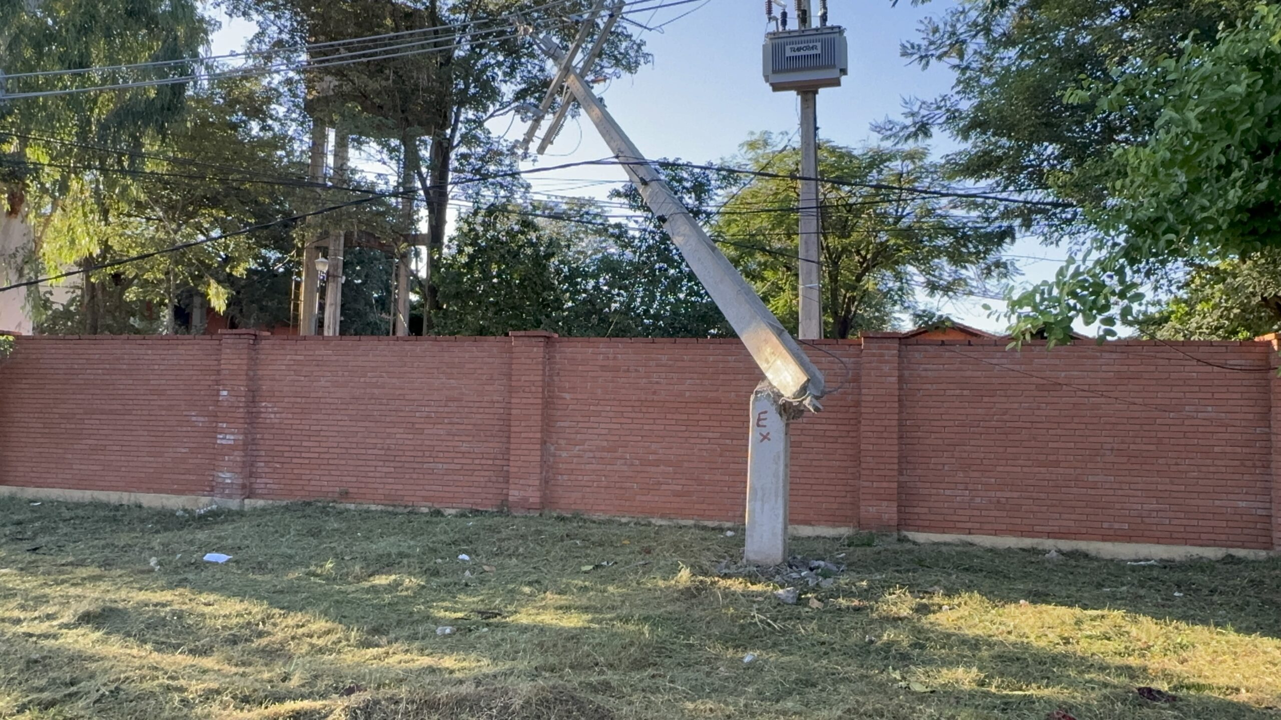 Seis columnas de hormigón resultaron afectadas tras el impacto de un eucalipto sobre el tendido eléctrico, generando cortes puntuales del servicio en sectores específicos de la ciudad.